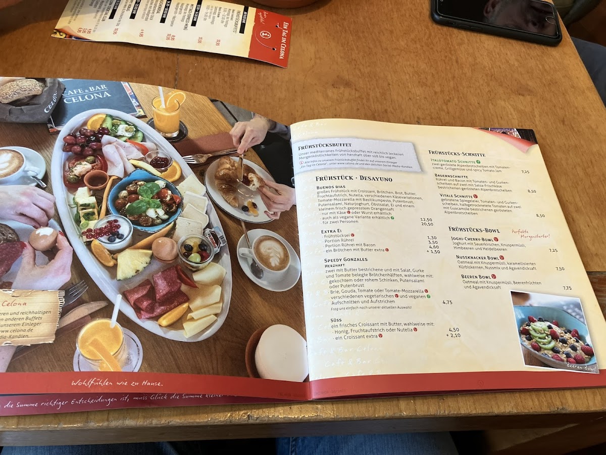 The menu at Cafe & Bar Celona features a variety of delectable options that cater to diverse tastes. Start your day off right with their morning buffet, which Zarina Kamarova found to be a delightful selection for two, priced fairly at approximately 27 euros. With an extensive range of breakfast choices, you can treat yourself to everything from hearty dishes to lighter fare, giving you a taste of culinary delight right at the start of your day.